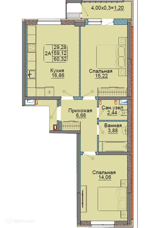2 комн. квартира в Краснодаре в ипотеку от 73 479 руб/месяц