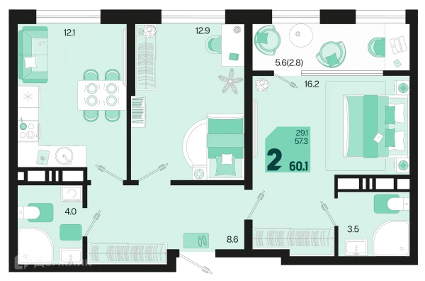 2 комн. квартира в Краснодаре в ипотеку от 69 937 руб/месяц
