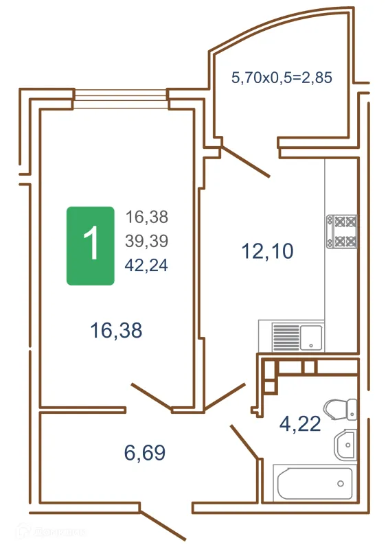 1 комн. квартира в Краснодаре в ипотеку от 41 189 руб/месяц