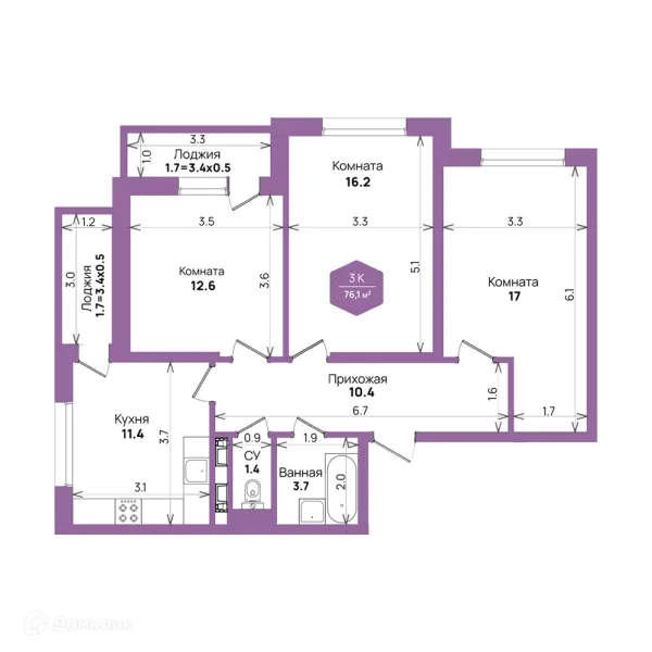3 комн. квартира в Краснодаре в ипотеку от 72 070 руб/месяц