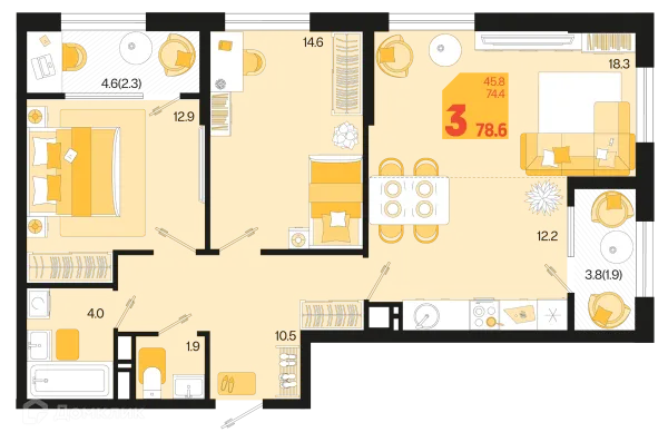 3 комн. квартира в Краснодаре в ипотеку от 84 575 руб/месяц