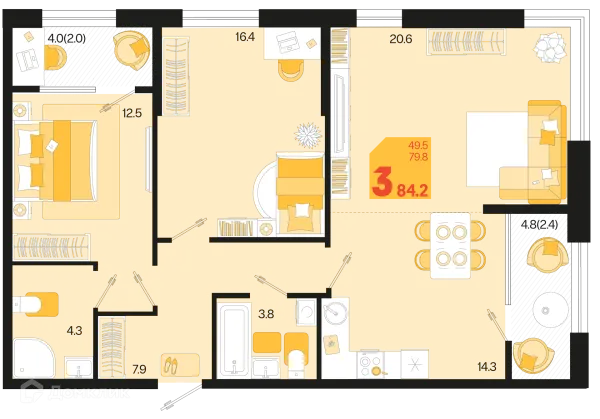 3 комн. квартира в Краснодаре в ипотеку от 71 520 руб/месяц