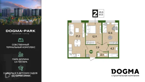 2 комн. квартира в Краснодаре в ипотеку от 48 671 руб/месяц