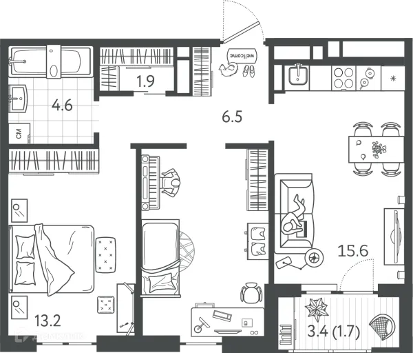 2 комн. квартира в Краснодаре в ипотеку от 58 883 руб/месяц