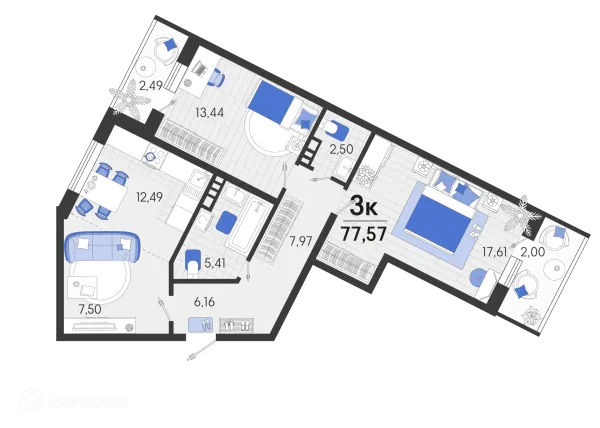 3 комн. квартира в Краснодаре в ипотеку от 69 861 руб/месяц