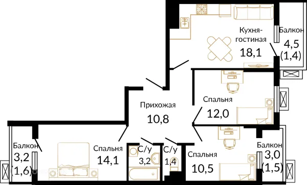 3 комн. квартира в Краснодаре в ипотеку от 70 681 руб/месяц
