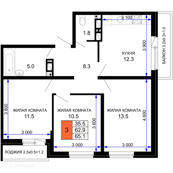 3 комн. квартира в Краснодаре в ипотеку от 73 687 руб/месяц