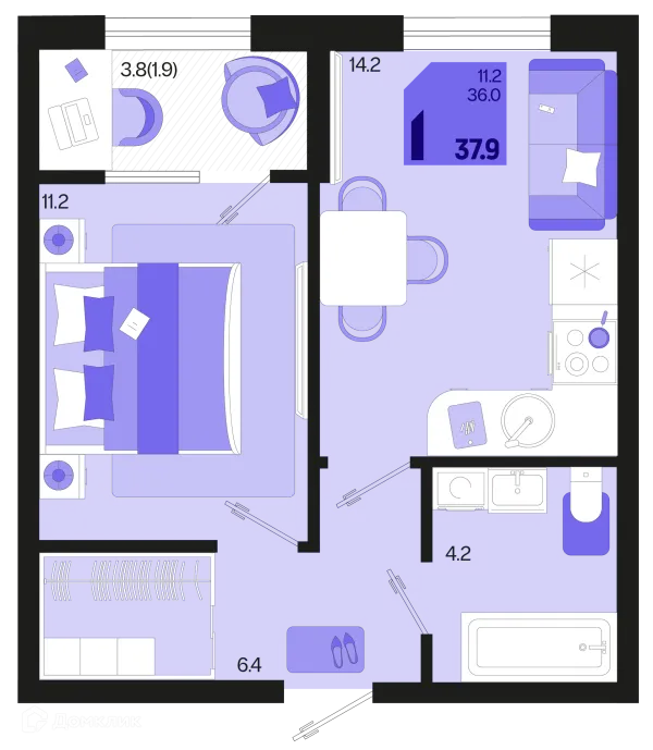 1 комн. квартира в Краснодаре в ипотеку от 38 754 руб/месяц