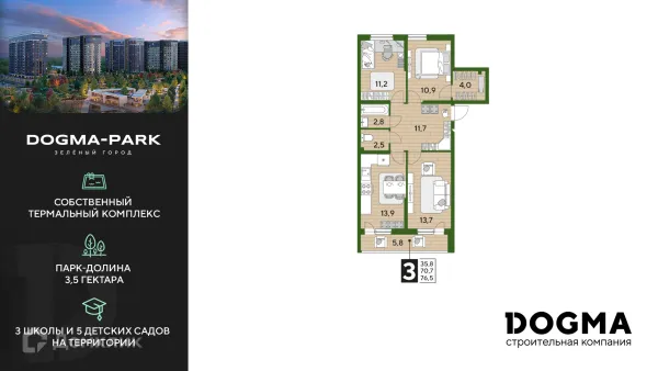 3 комн. квартира в Краснодаре в ипотеку от 64 518 руб/месяц