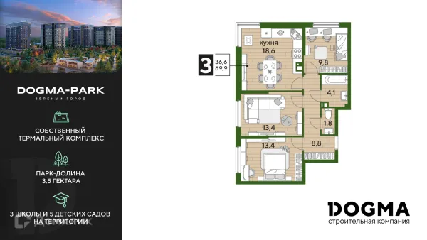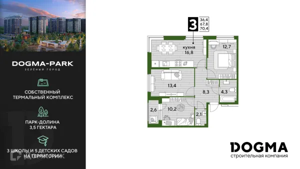 3 комн. квартира в Краснодаре в ипотеку от 69 664 руб/месяц