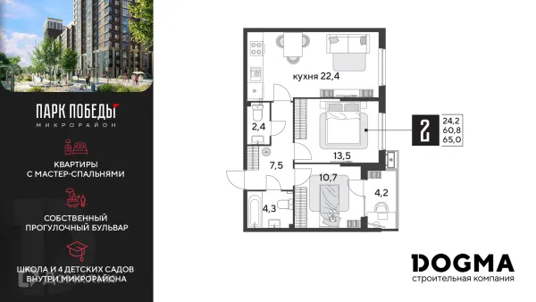 2 комн. квартира в Краснодаре в ипотеку от 73 874 руб/месяц
