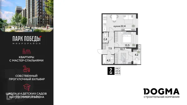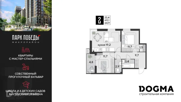 2 комн. квартира в Краснодаре в ипотеку от 65 609 руб/месяц