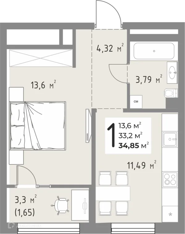 1 комн. квартира в Краснодаре в ипотеку от 54 007 руб/месяц