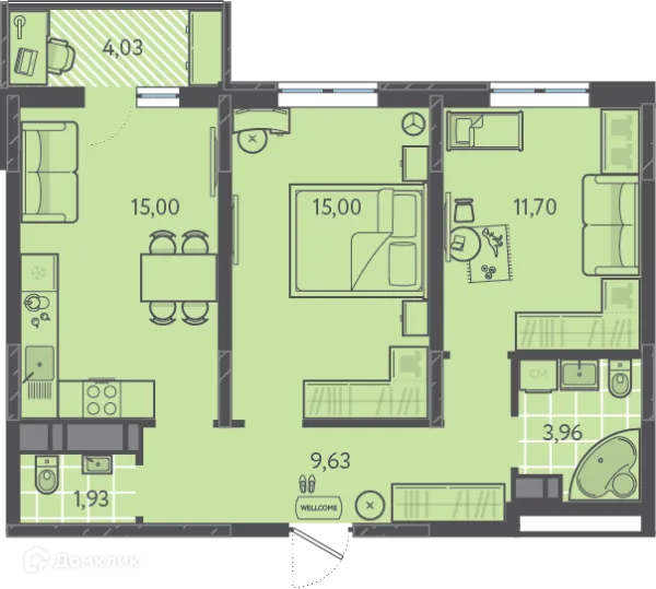 2 комн. квартира в Краснодаре в ипотеку от 54 754 руб/месяц