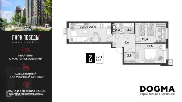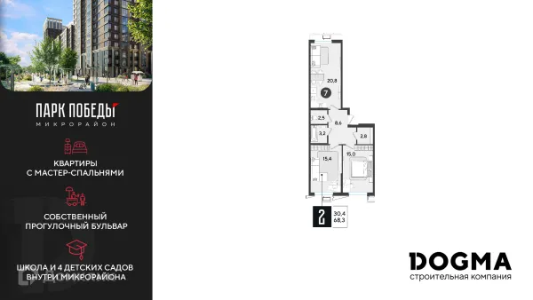 2 комн. квартира в Краснодаре в ипотеку от 64 380 руб/месяц