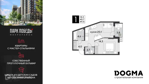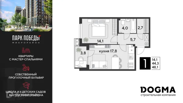 1 комн. квартира в Краснодаре в ипотеку от 54 590 руб/месяц