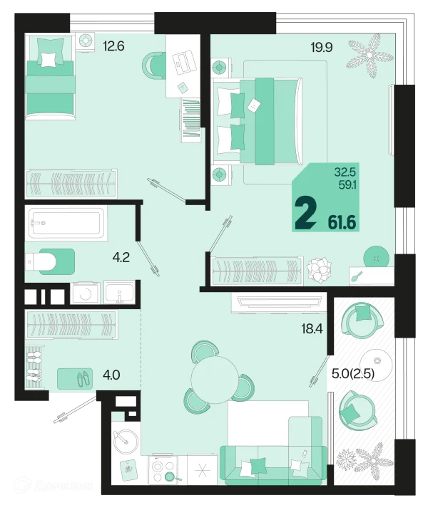 2 комн. квартира в Краснодаре в ипотеку от 61 398 руб/месяц