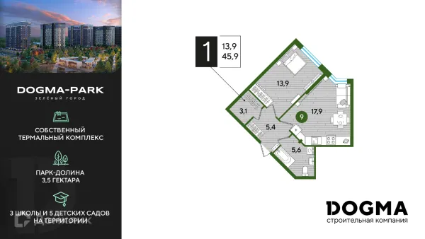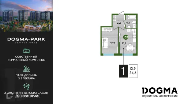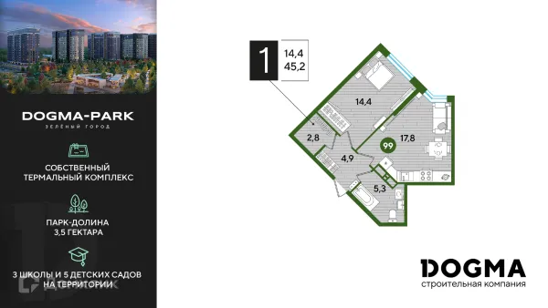 1 комн. квартира в Краснодаре в ипотеку от 43 177 руб/месяц