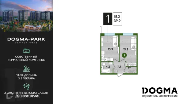 1 комн. квартира в Краснодаре в ипотеку от 42 801 руб/месяц